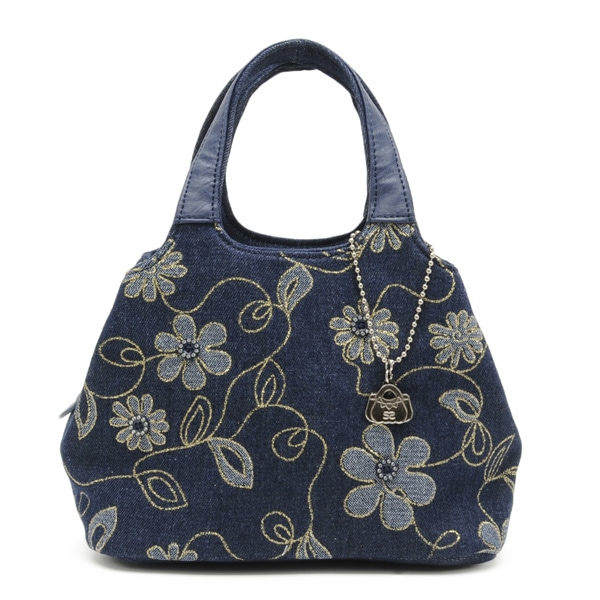 デニム地に花模様をプリントしたハンドバッグ!